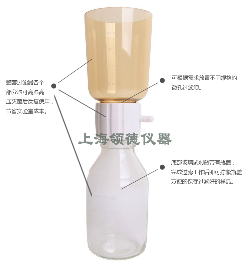 同时该款瓶顶过滤器可以在121度高温高压灭菌后反复使用,更加节省了实验室的成本。